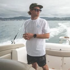 The Desolve Bow UPF50 Mens T-Shirt provides optimum sun protection, and is made of cotton-spandex blend for comfort and stretch. Built for 100% legit salty sea dogs and fish harassing enthusiasts.