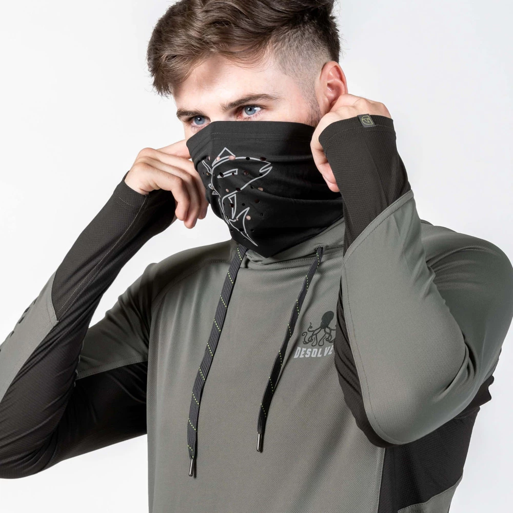 Quick Drying / UPF 30+ / Recycled Polyester Fabric / High Wicking / Rapid Cooling / Odour Resistant / Laser Cut Face Mask / Lightweight Hood / Long Fit / Screen Print / Recycled Packaging / Sizes S – 4XL